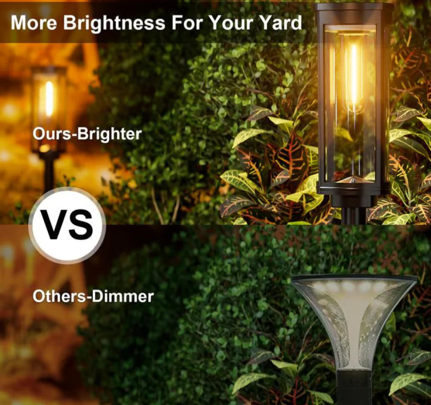 ✅ Ours: Elegant Nordic design, 100% solar-powered, weatherproof, warm ambiance, easy installation.